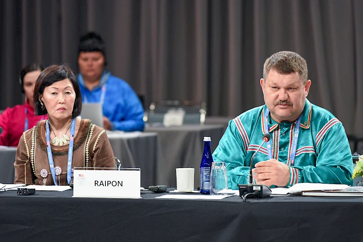 Arctic Council Ministerial meeting in Rovaniemi, Finland, 2019. Then Foreign Minister of Norway, Ine Marie Eriksen Søreide, greets Chief Gary Harrison from the Arctic Athabaskan Council© Jouni Porsanger / Ministry for Foreign Affairs of Finland The Importance of the Arctic Council for Indigenous Peoples May 12, 2025Arctic PeoplesAleut International AssociationArctic Athabaskan CouncilGwich'in Council InternationalInuit Circumpolar CouncilRussian Association of Indigenous Peoples of the NorthSaami CouncilConservation of Arctic Flora and FaunaEmergency Prevention, Preparedness and Response How the Council’s Permanent Participants bring their perspectives and knowledge to the table Article by: Saami Council The category of Permanent Participants is a unique model of including Indigenous Peoples in decision-making. It was created to provide Arctic Indigenous Peoples with the means of active participation and full consultation in the Council’s deliberations. The Arctic Council is the only international body that has accredited Indigenous Peoples this status. In this article Permanent Participants reflect on the importance of the Council for them – and vice versa. In general, the engagement by Arctic Indigenous Peoples in the Arctic Council is guided by the understanding that healthy and productive ecosystems, both on land and in marine environments, are fundamental to the cultures, identities, and livelihoods of Arctic Indigenous Peoples. These cultures rely on local food sources and traditional materials to maintain health, safety, and well-being. Indigenous Knowledge has been generated and passed down for generations, ensuring a balanced relationship with the surroundings and the environment. However, climate change, pollution, land use changes, and encroachments are altering natural landscapes and threatening Indigenous ways of life. The Arctic Council is important, as our homelands and matters related to these lands and waters are on the Arctic Council agenda. The Permanent Participants are at the Arctic Council table to address the challenges the Arctic Indigenous Peoples are facing and amplify the voices of Arctic Indigenous Peoples. Since the first gathering of Arctic Indigenous Peoples in Copenhagen in 1973, cooperation among Indigenous Peoples across the circumpolar region has evolved significantly. From early efforts to unify Indigenous Peoples’ voices in addressing shared concerns to achieving formal recognition in international cooperation, the journey has been marked by both challenges and accomplishments. At the heart of this progress is the Arctic Council, an intergovernmental forum that has provided Arctic Indigenous Peoples with a seat at the table to shape policies affecting their lands, cultures, and ways of life. The first Arctic Indigenous Peoples’ meeting in 1973 laid the foundation for organized cooperation among Indigenous Peoples across national borders. The participants envisioned a collective body to advocate for their rights and interests. Their declaration emphasized the need to protect their lands, resources, and cultural heritage for future generations.