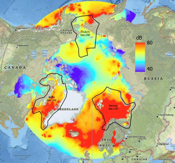 © Adobe Stock Changing Soundscape of the Arctic Ocean May 12, 2025OceanProtection of the Arctic Marine EnvironmentWorld Wide Fund for Nature, Arctic Programme (WWF) How Human Activity Impacts Underwater Noise in the Arctic and Modeling Solutions If you were to plunge into the icy waters of the Arctic Ocean and submerge your head underwater, you may hear a range of different sounds. Wind would create sound waves that penetrate below the surface. Near the ice edge, you could hear the cracking and shearing of sea ice. If it were spring, you may hear a bearded seal singing in courtship. You could hear walrus making a knocking sound, or narwhal and beluga whales clicking as they use echolocation. However, what you may also hear is just very quiet ambient sound. “When sea ice forms over the surface of the Arctic Ocean, it acts like a blanket and things become very quiet,” said Dr. Melanie Lancaster, Senior Specialist, Arctic Species at WWF’s Global Arctic Programme. “This naturally quiet environment has allowed Arctic marine species to evolve unique acoustics for navigation, feeding, mating and communicating.” But the Arctic Ocean as we know it is changing. Sea ice is thinning and its extent is decreasing, leading to more human activity in the region and smaller areas of acoustic refuge. All of this is changing the underwater soundscape in the Arctic.